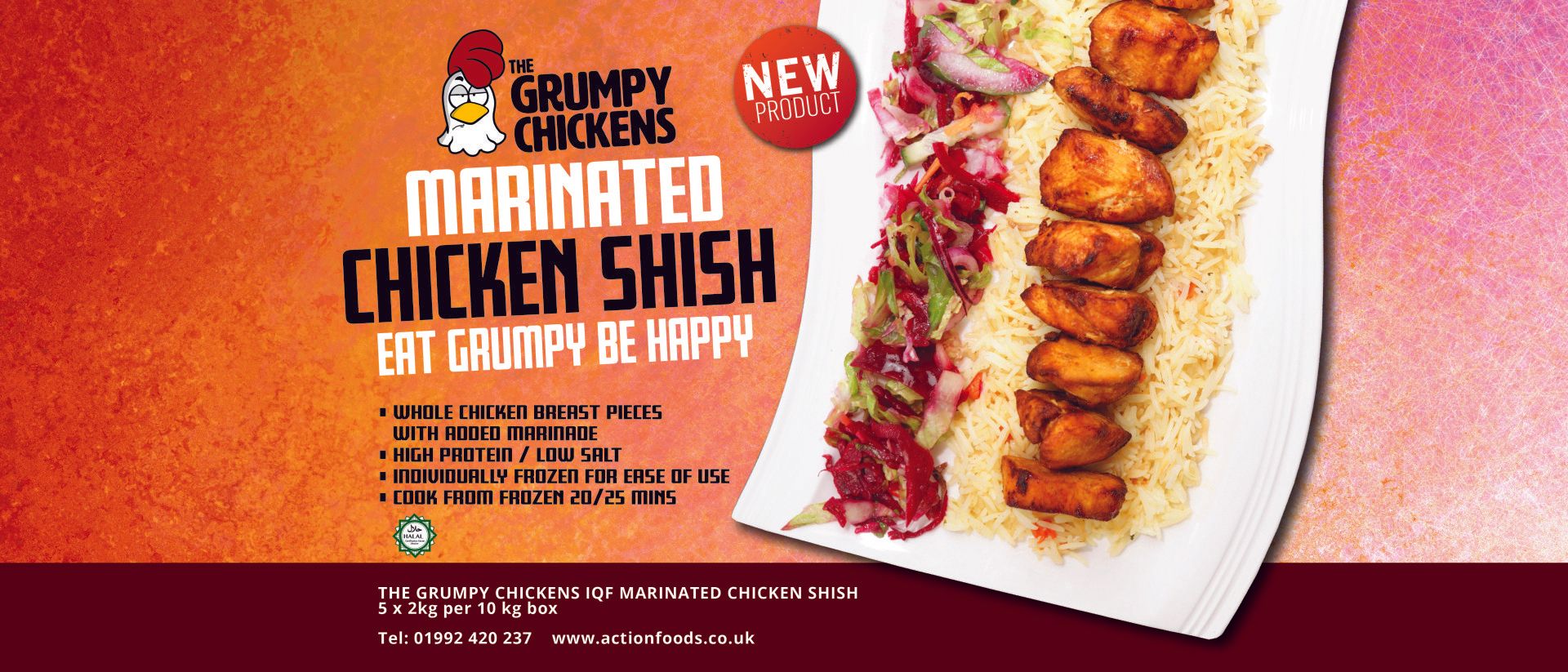 New for 2020 is the Grumpy Chicken, a range which we hope will mirror the success of the Grumpy pig. Available in both foodservice and retail pack sizes we aim to offer shredded, sliced and whole breast products in chilled and frozen formats